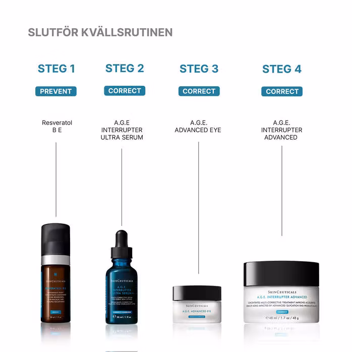 - Blanda in produkten det uppstramande serumet i huden. Vid användning på morgonen, applicera efter ett SkinCeuticals C-vitamin antioxidantserum och före en SkinCeuticals fuktkräm och solskyddsmedel.