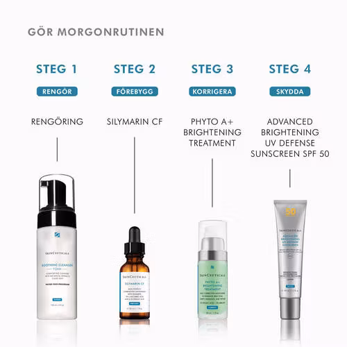 - Pressa försiktigt in i huden. Applicera på morgonen efter en antioxidant från SkinCeuticals och använd sedan en solcreme med högt SPF-skydd från SkinCeuticals.